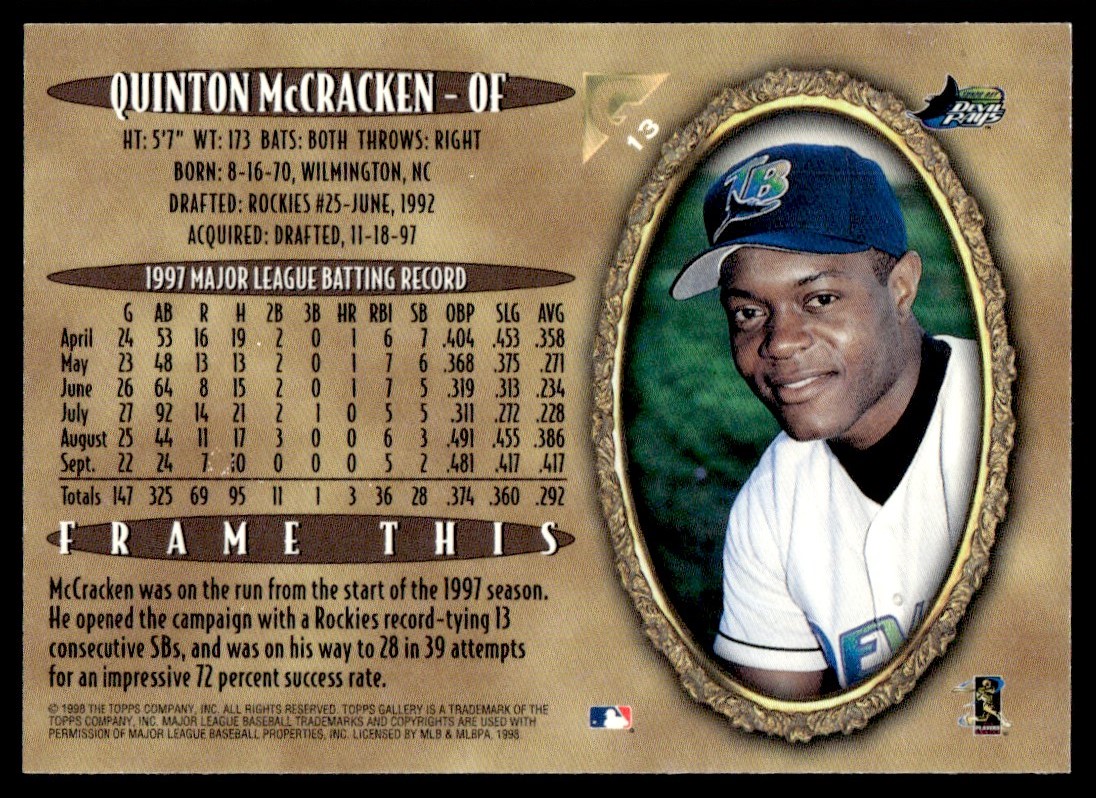 | 1998 Topps Gallery Portrait Quinton McCracken Tampa Bay Devil Rays #13 |