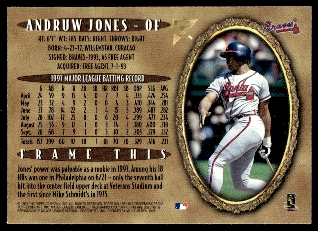 | 1998 Topps Gallery Portrait Andruw Jones Atlanta Braves #1 |