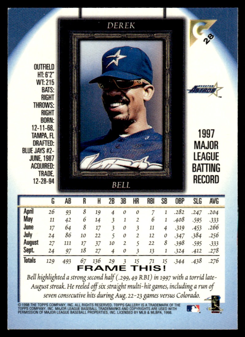 | 1998 Topps Gallery Permanent Collection Derek Bell Houston Astros #28 |