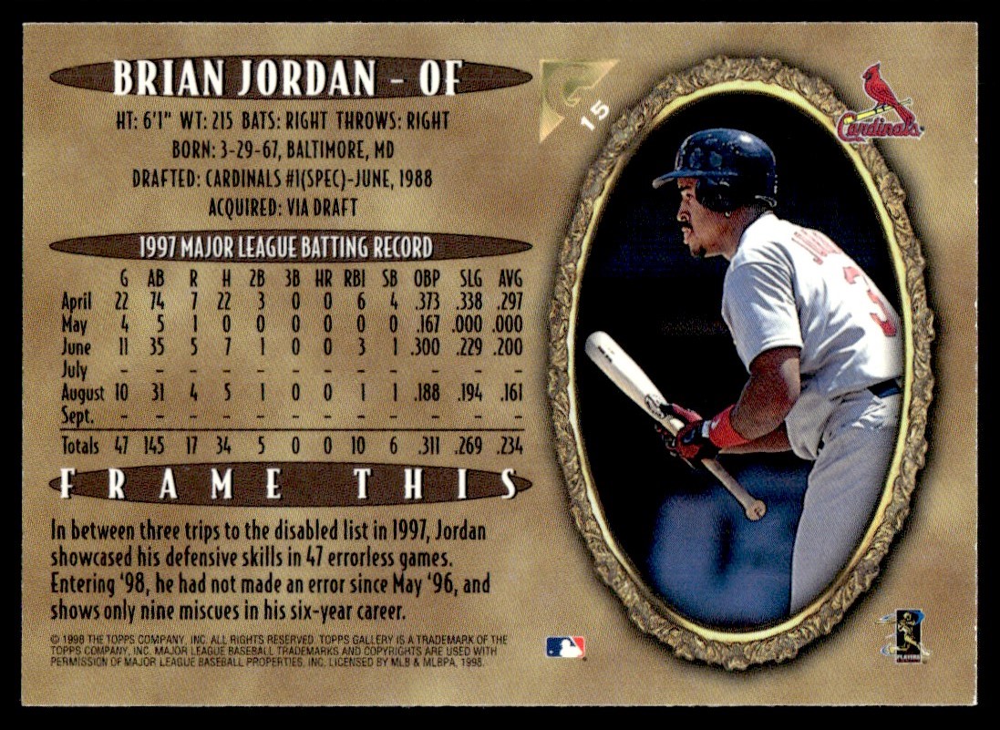 | 1998 Topps Gallery Portrait Brian Johnson San Francisco Giants #15 |