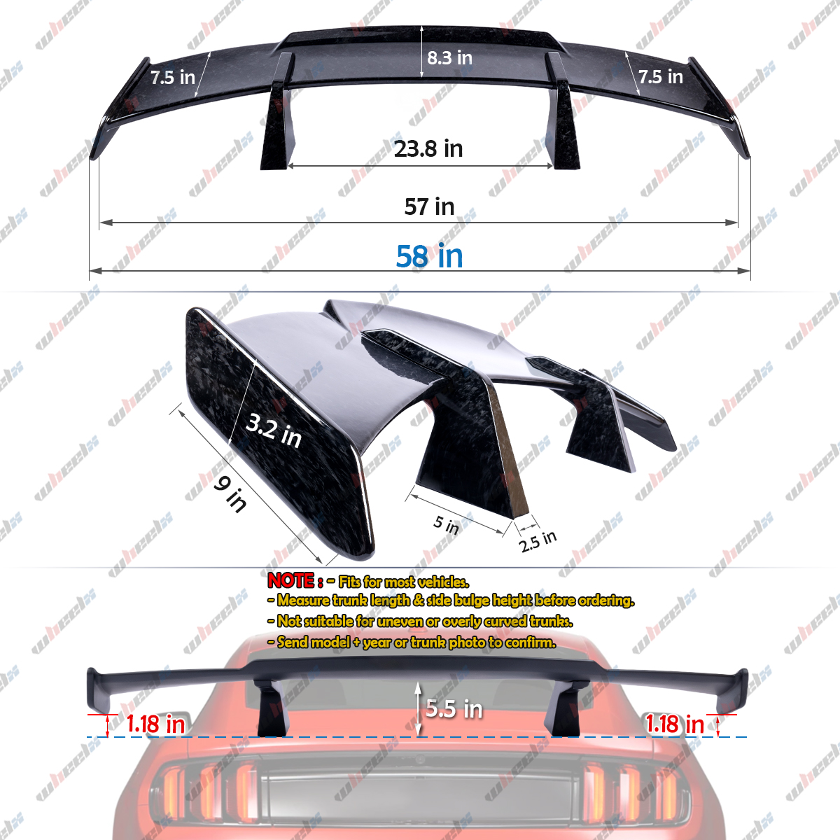 - Package Includes:1x Trunk Spoiler + 2x support + M6 screw