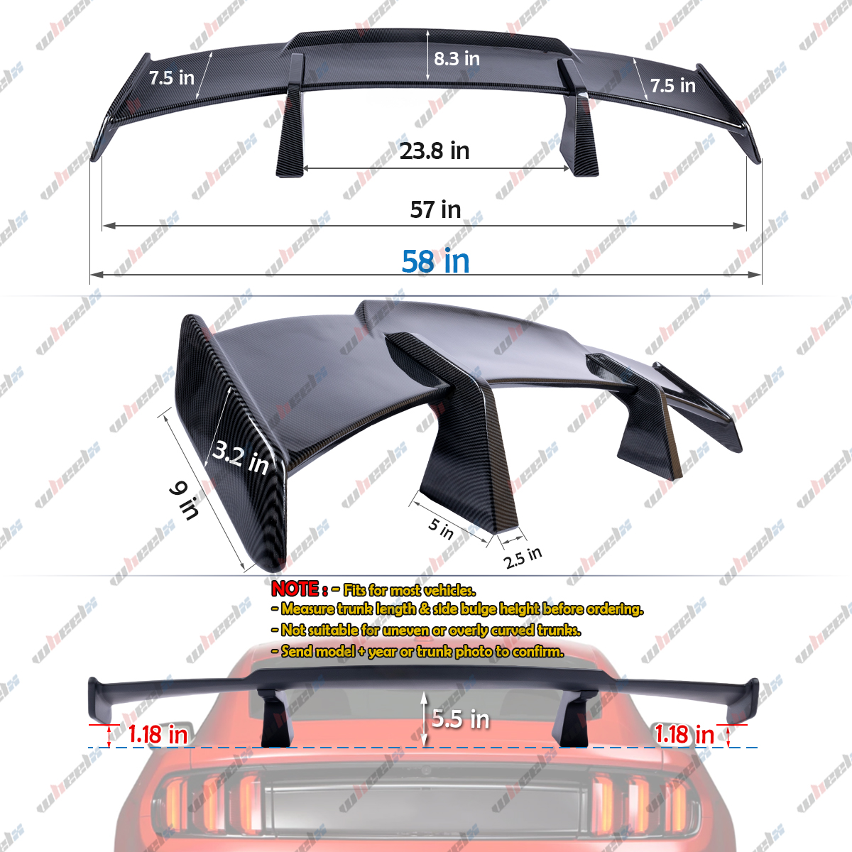 Universal 58 Inch ABS Racing GT Style Rear Trunk Spoiler Wing