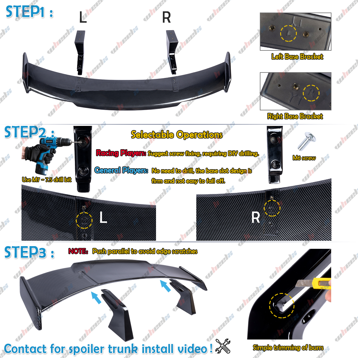 - Package Includes:1x Trunk Spoiler + 2x support + M6 screw