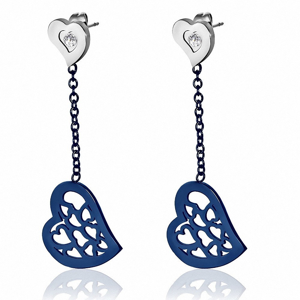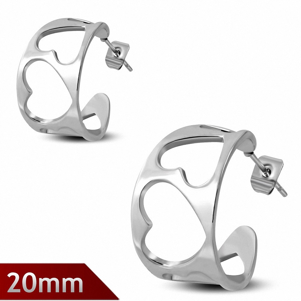 Par De Pendientes Acero Medio Círculos Corazones Pendientes