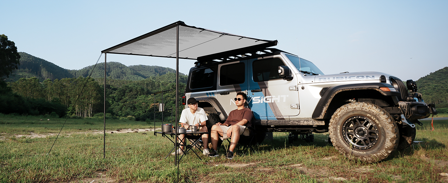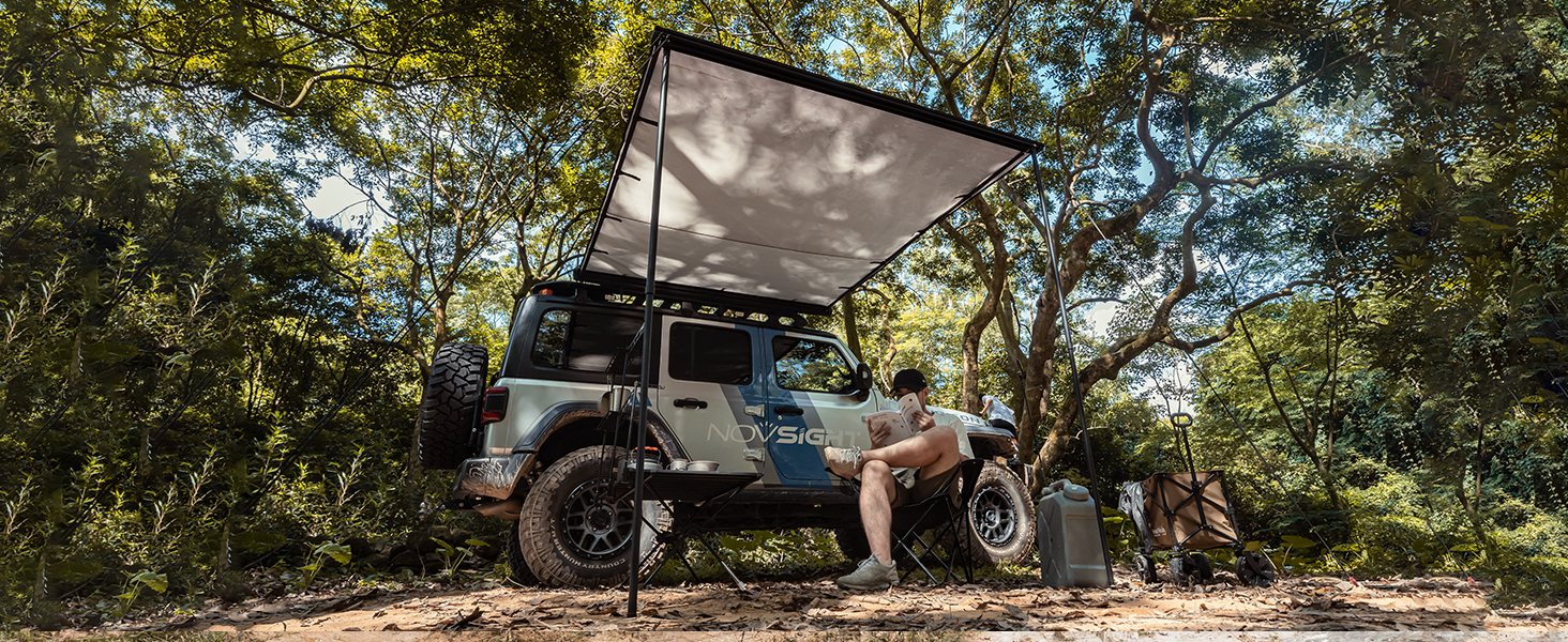 1.Novsight car side awning is a versatile and durable sunshade that fits any vehicle with a roof rack and is made of high-quality materials to handle brutal weather. The fabric blocks UV rays and is the perfect buddy for outdoor trips. It will boost your fun by giving your family a comfy, shaded spot to sit.1.Novsight car side awning is a versatile and durable sunshade that fits any vehicle with a roof rack and is made of high-quality materials to handle brutal weather. The fabric blocks UV rays and is the perfect buddy for outdoor trips. It will boost your fun by giving your family a comfy, shaded spot to sit.Our vehicle Awning is suitable for SUVs, cars, trucks, SUVs, vans, land camping trailers or almost any vehicle with roof brackets.