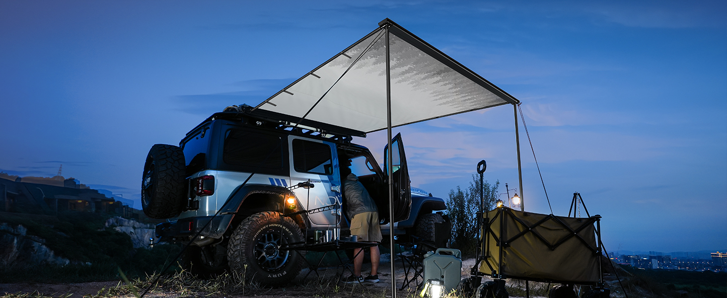 【Quick Installation】: Installation or disassembly can be completed in just a few seconds.After folding,The car awning camping retractable is compact,lightweight, and easy to carry.The internal printing design is more simple and elegant,enhancing your camping experience.