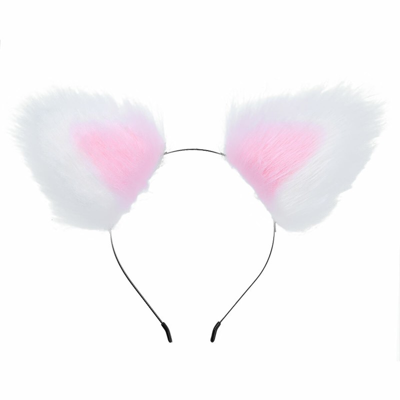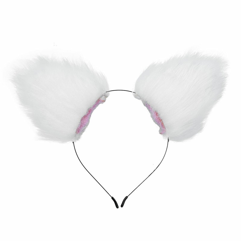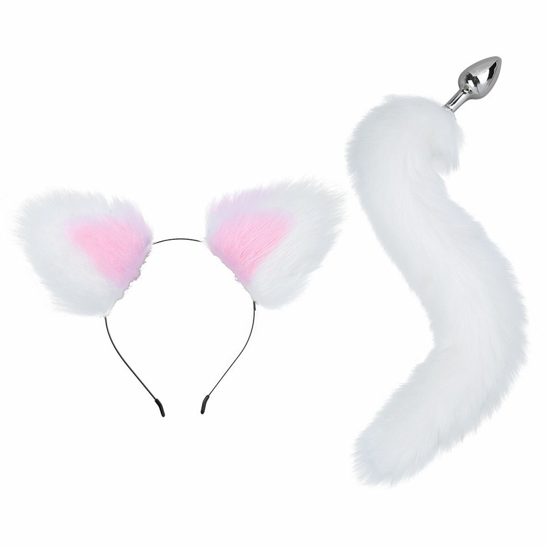 Plush Ears Headband Headdress with Tail Chrome Metal Plug Cosplay Toy.