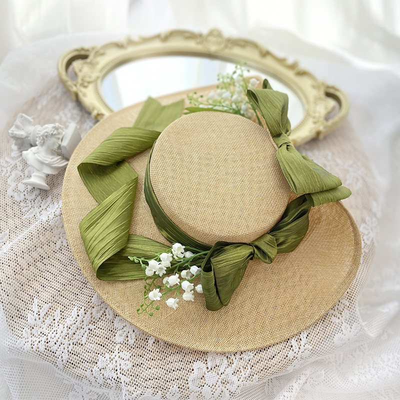 Lady Wide Brim Sun Hat Mesh Bow Cotton Linen Cap Church Wedding Party Beach Cute