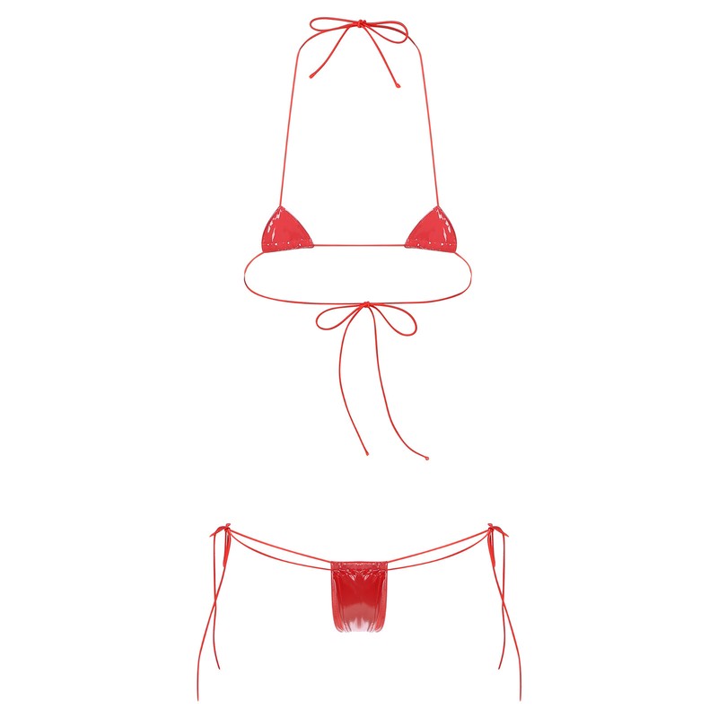 This glossy patent leather bikini set, mini coverage, highlight you body curve and make you more attractive.