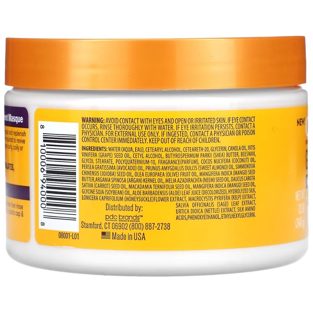 Die Cantu Grapeseed Strengthening Treatment Masque ist eine wirksame Stärkungskur , die tief in die Haarstruktur eindringt und das Haar von innen heraus regeneriert. Die Maske kombiniert die pflegenden Eigenschaften von Traubenkernöl , das reich an den Vitaminen A, E, K und D ist, die Lipidbarriere stärkt und das Haar vor Schäden schützt.