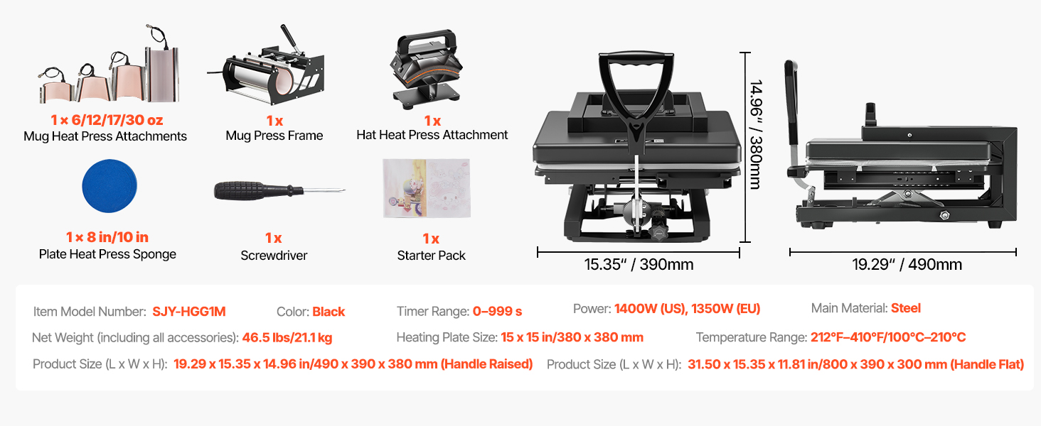 La pressa termica da 38 x 38 cm (15 x 15 pollici) è dotata di pressione regolabile per un controllo accurato, perfetta per lavorare su materiali come magliette e tazze. Garantisce risultati di trasferimento termico precisi e semplici.