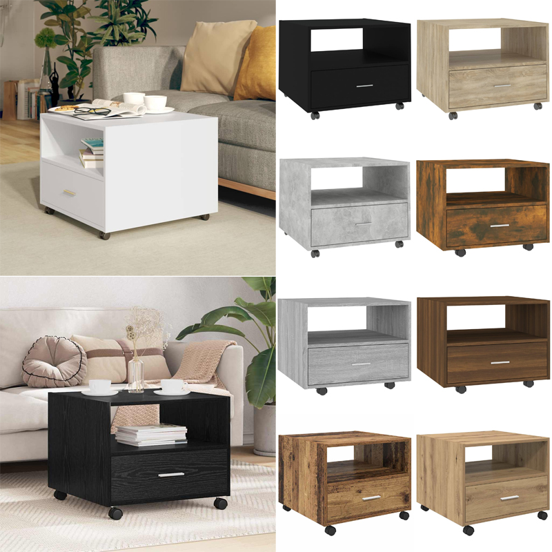 Modern Couchtisch 55x55x40cm Holzwerkstoff Beistelltisch Kaffeetisch Mit Rollen