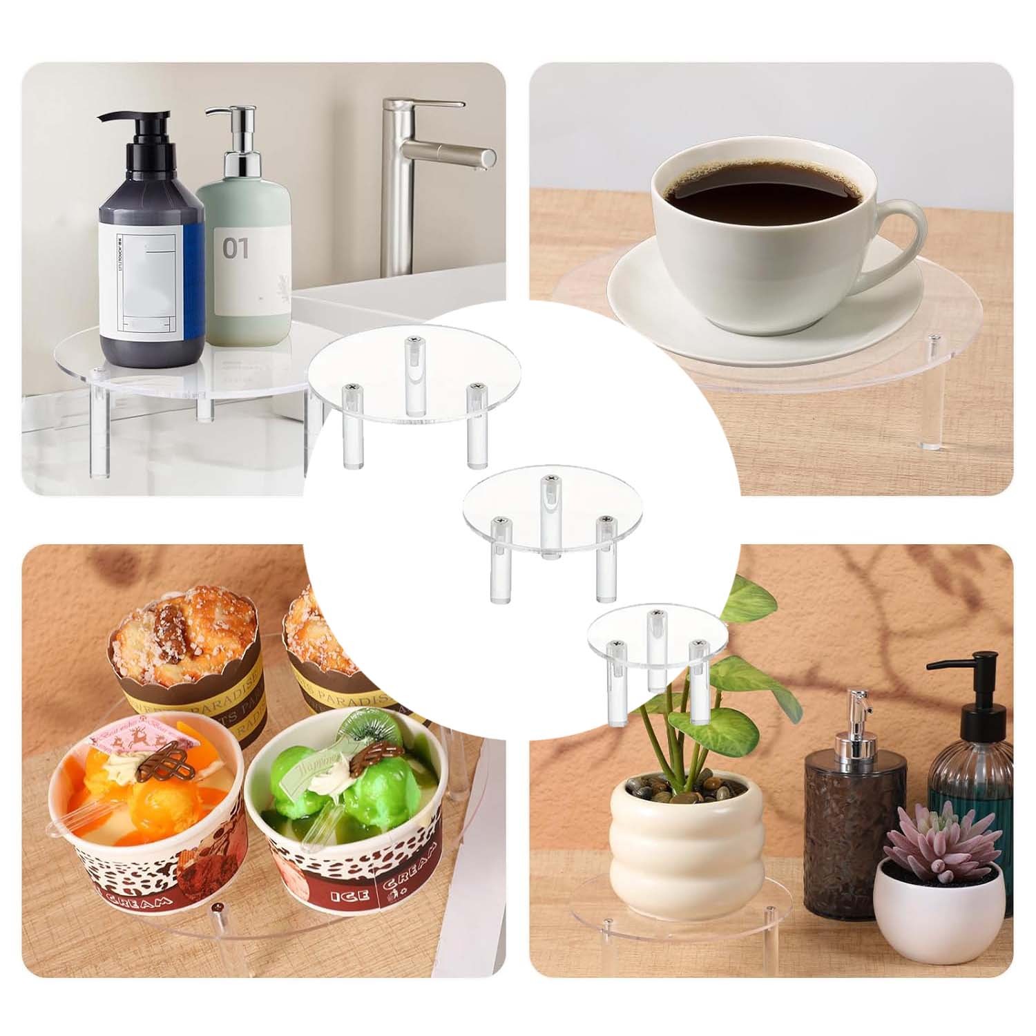 Set of 3 Clear Acrylic Display Risers for Cakes Jewelry and Home Decor
