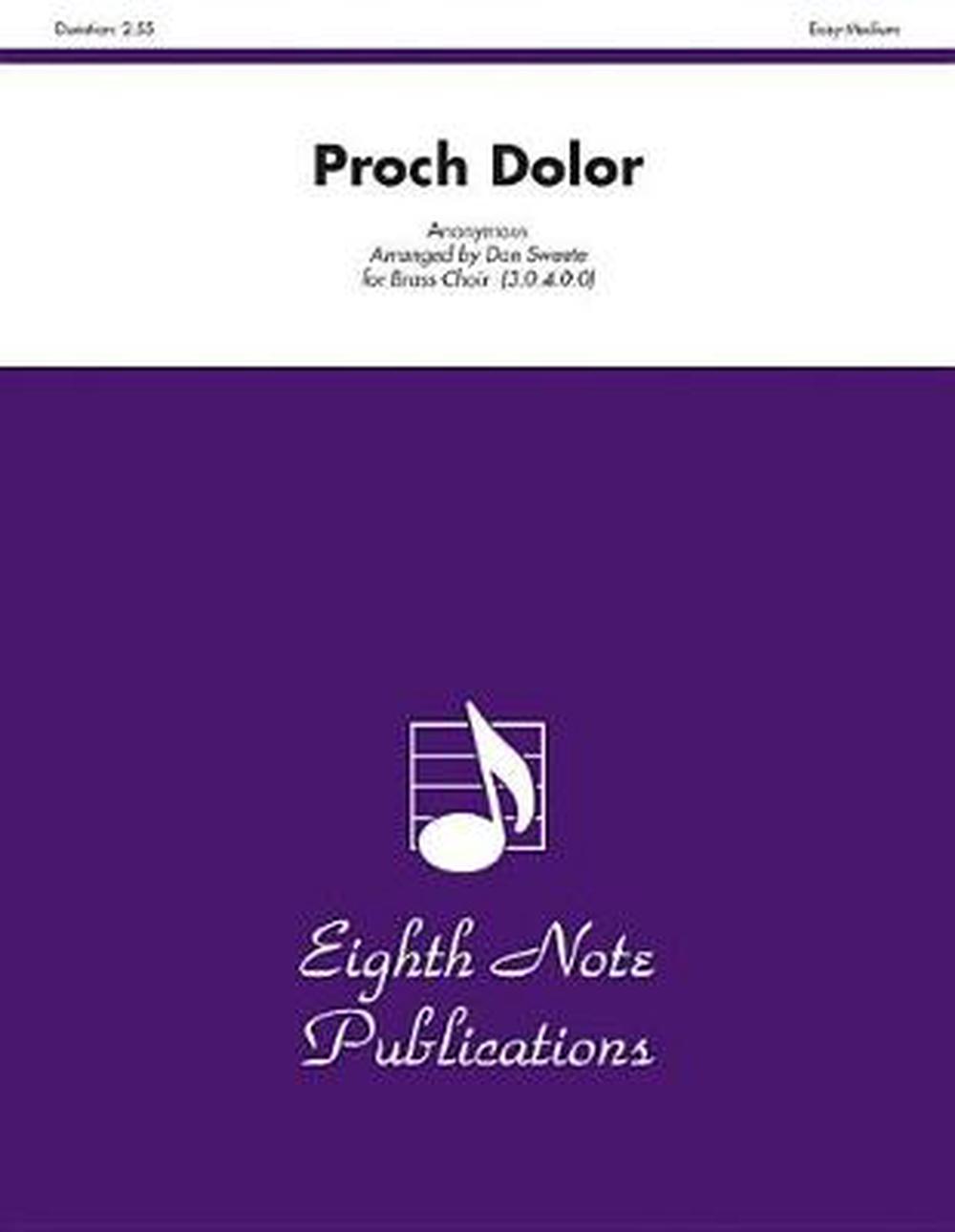 Description Proch Dolor has been scored for a brass choir consisting of 3 trumpets and 4 trombones. This is an example of early Renaissance choral music.The work achieves a mood of sadness and of contemplative peace. Not too difficult, this work could easily be performed by a high school level ensemble.