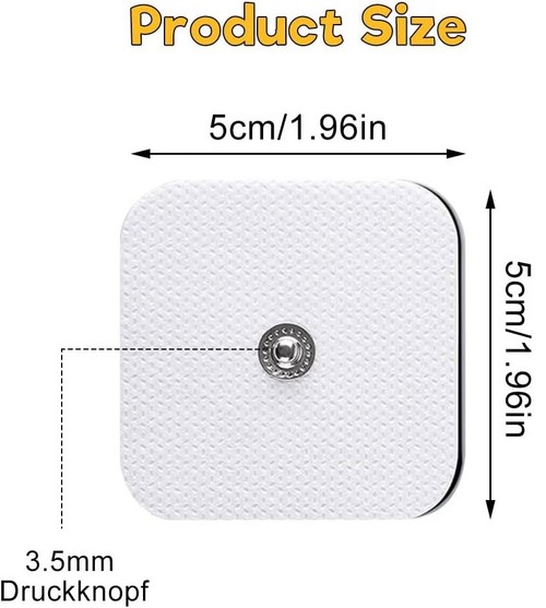 Sie erhalten elektrodeneinlagen in der größe 5x5cm. diese standardgrößen sind vollständig kompatibel mit den meisten tens- und ems-geräten auf dem markt, die mit einem 2mm anschluss verbunden werden.