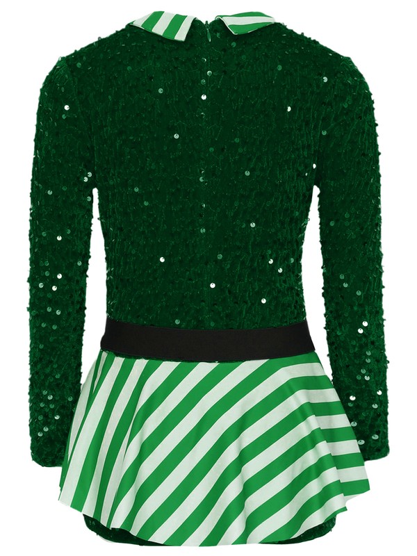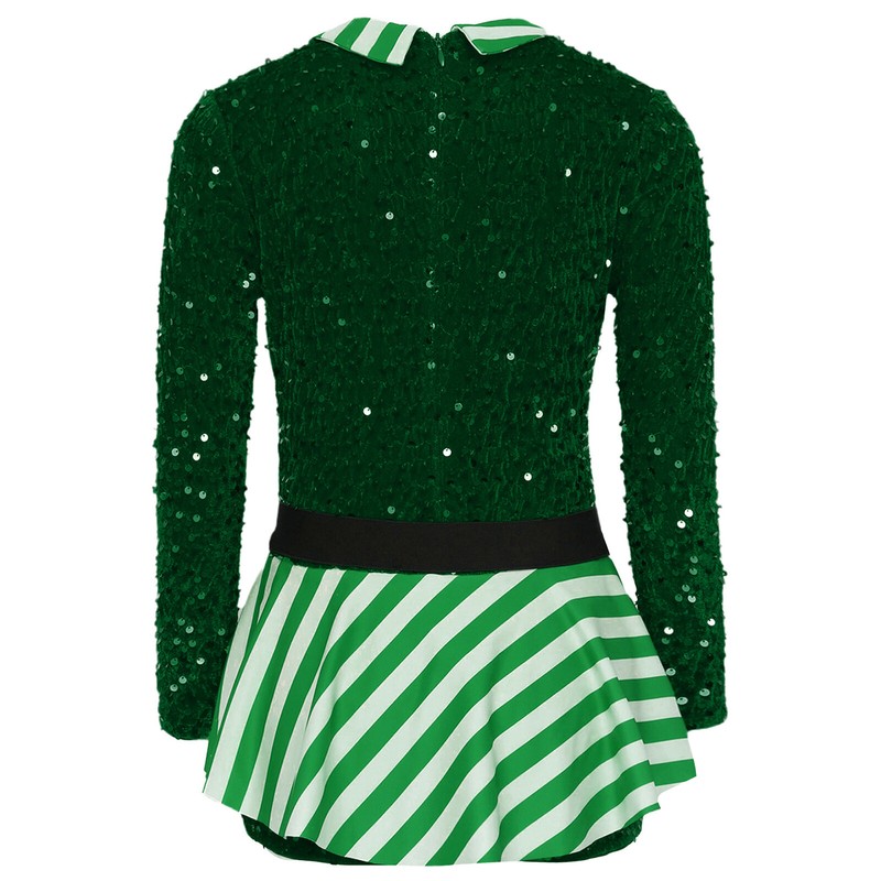 Kids Girls Christmas Gym Bodysuit Dancewear Costume Twirling Dress Leotard Xmas
