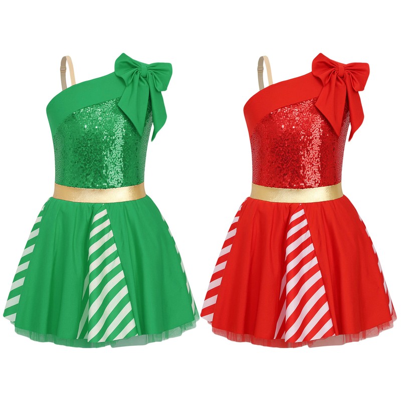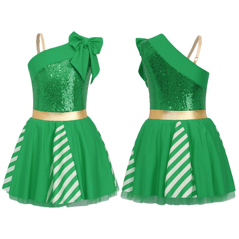 A sequins striped Christmas dress for girl, will make a bold impression and have a blast at Xmas party .