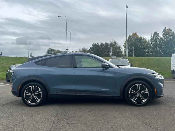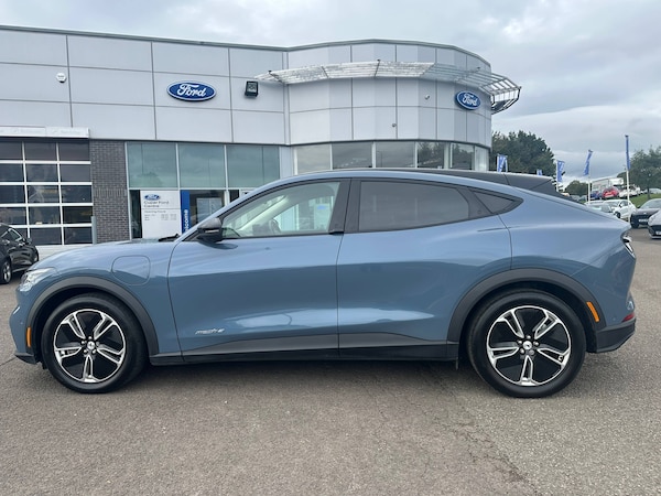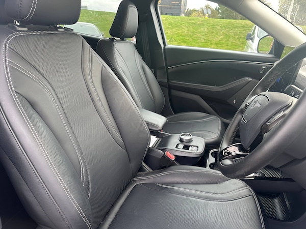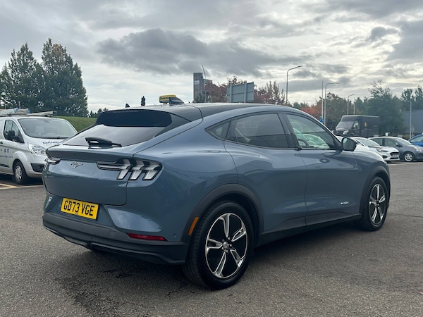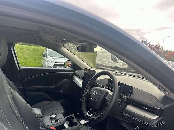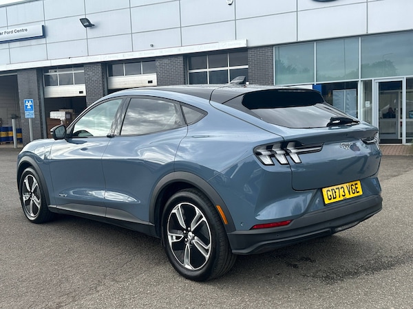 3 point rear seatbelts, ABS, Child locks on rear doors, ESP, Evasive steering assist, Pre collision assist inc Collision mitigation, Forward collision warning, Dynamic brake support, Automated emergency braking, 10.2 inch digital insturment cluster, 360 degree camera, Applink remote control system, BLIS (Blind Spot Information System) with cross traffic alert, Distance alert and indication system, Electric power steering, Emergency services call system, Ford SYNC4A with 15.5 inchTouch,DAB radio,Emer assist,Wireless carplay androidauto,2 front,rear USB ports,6 speakers,FordPass connect,Connected naviation, Front and rear parking sensors, Intelligent adaptive cruise control with stop and go + lane centering, Lane departure warning with lane keeping aid, Selectable drive modes - active, whisper and untamed, Trip computer, Wireless charging pad, 3rd brake light, Black painted power fold heated mirrors with puddle light mustang logo projection, Body colour bumpers, Brace front grille design, Daytime running lights, LED Mustang signature tail lights, LED reflector headlamps, Quickclear heated windscreen, Rear privacy glass, Rear side wing doors, Rear wiper, Side cladding and wheel arches in black, Solid paint, 3 seat bench in 2nd row, 6 way manual driver seat adjustments, 6 way manual passenger seat adjustments, Dual electronic automatic temperature control, Front headrests, Front trunk, Full sensico artificical leather upholstery, Heated front seats and steering wheel, One pedal drive, Rear head restraints, Single front passenger seat, 11 kW AC onboard charger, 115kw high powered charging, Single motor rear wheel drive, Universal home charging cable and public charging cable, E-Latch keyless entry system including B-Pillar keypad access, Keyless Start, Thatcham Cat.1 alarm, 18 inch 5 spoke alloy wheels