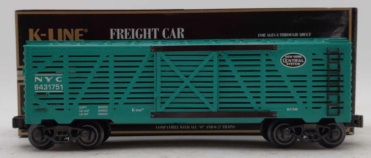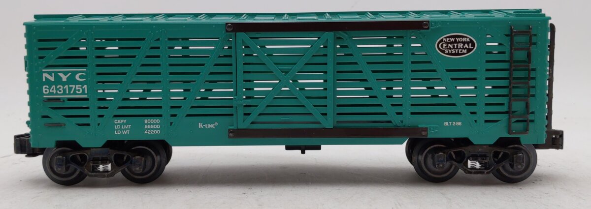 Here is a K-Line K-643-1751 O Gauge New York Central Classic Stock Car. This car features plastic construction, plastic trucks, metal wheels and axles.