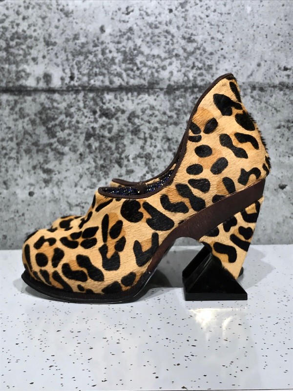 Bold and beautiful, the Irregular Choice "Botoxic" pump features a totally cool architectural heel, leopard print, and effortless style. These sweet shoes are in excellent like new condition. No flaws to note. Wore one time and not for long. No longer in stores. Circa 2012. Size 8. Please check the measurements below to ensure a proper fit. I no longer have the original box but will be sending them in a box. All of my items come from a smoke free home.