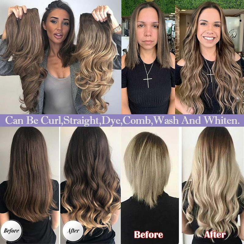 ❤Can be Restyled: Wire extensions can be dyed, curled or straightened according to your need, please note the hair can be dyed to darker colour only and make sure the temperature under 180℃ when you style it.
