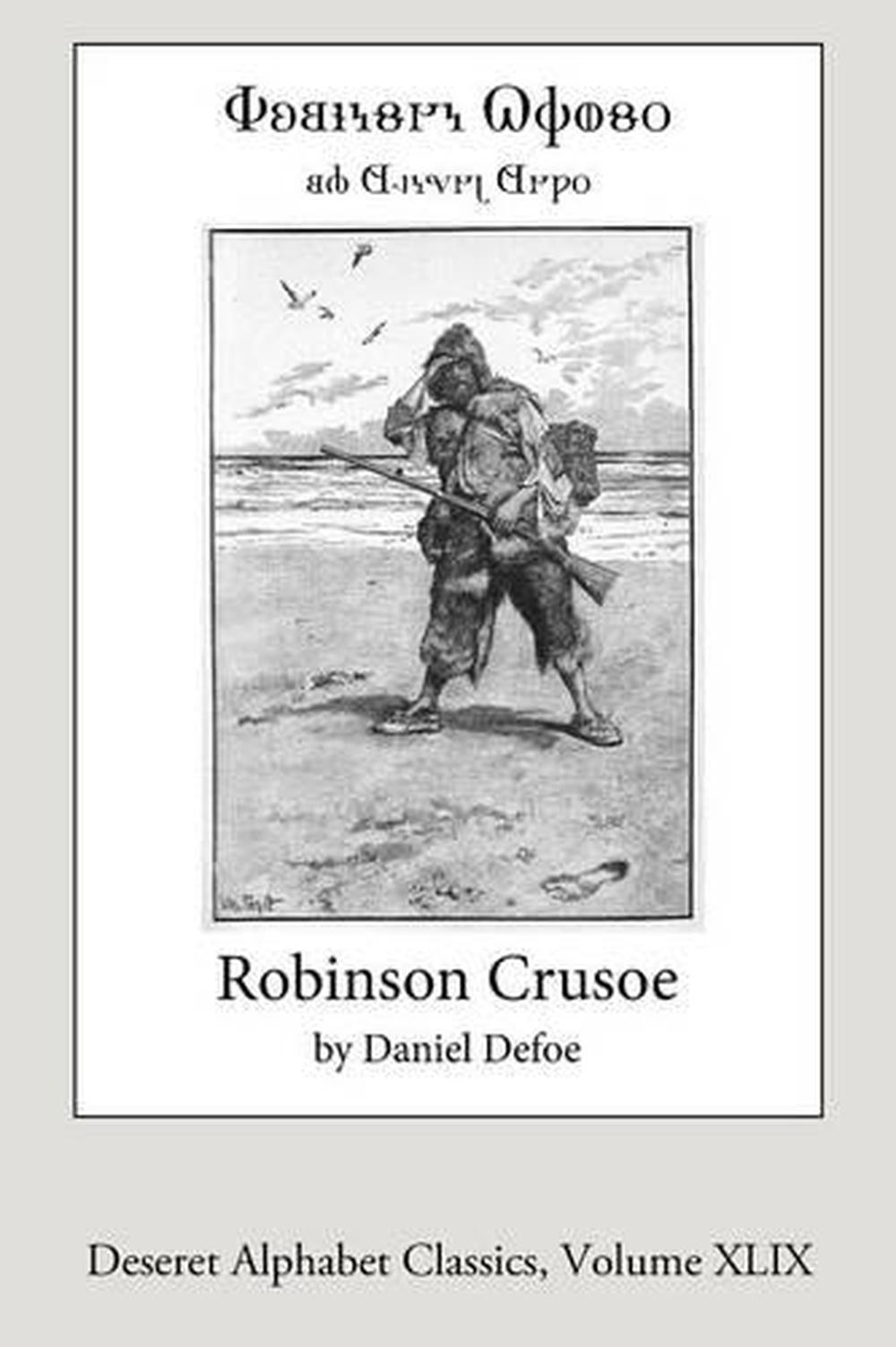 Description Daniel Defoe (1660-1731) born Daniel Foe, was an English trader, writer, journalist, pamphleteer, and spy. Defoe is noted for being one of the earliest proponents of the novel, and is among the founders of the English novel. He was a prolific and versatile writer, producing more than five hundred books, pamphlets, and journals on various topics, including politics, crime, religion, marriage, psychology, and the supernatural. Robinson Crusoe is Defoe's most successful work. First published in 1719, it was an instant success and went through four editions by the end of the year; Defoe followed it up with two sequels. The core of the story is an account of Crusoe's quarter century alone on an uninhabited island; near the end of his stay, he is joined by a Caribbean islander who becomes his manservant, Friday. Although one of the first novels in English, it is among the most popular and endures constant adaptations and imitations. This book is in the Deseret Alphabet, a phonetic alphabet for writing English developed in the mid-19th century at the University of Deseret (now the University of Utah).