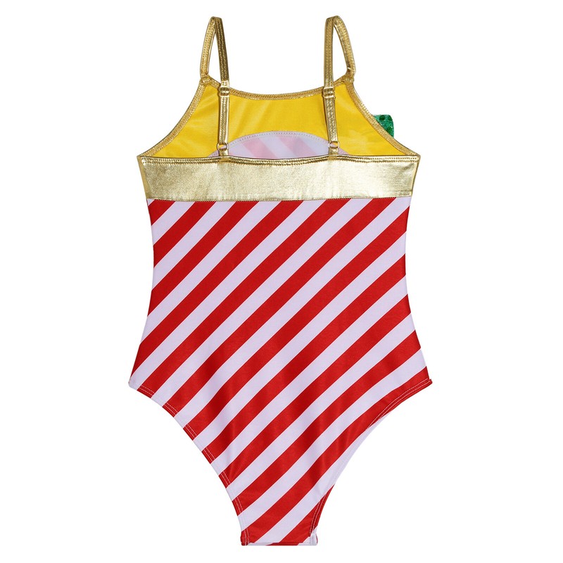 Designed with adjustable shoulder straps, bronzing cloth and striped cloth patchwork, sequin and bowknot adorned.