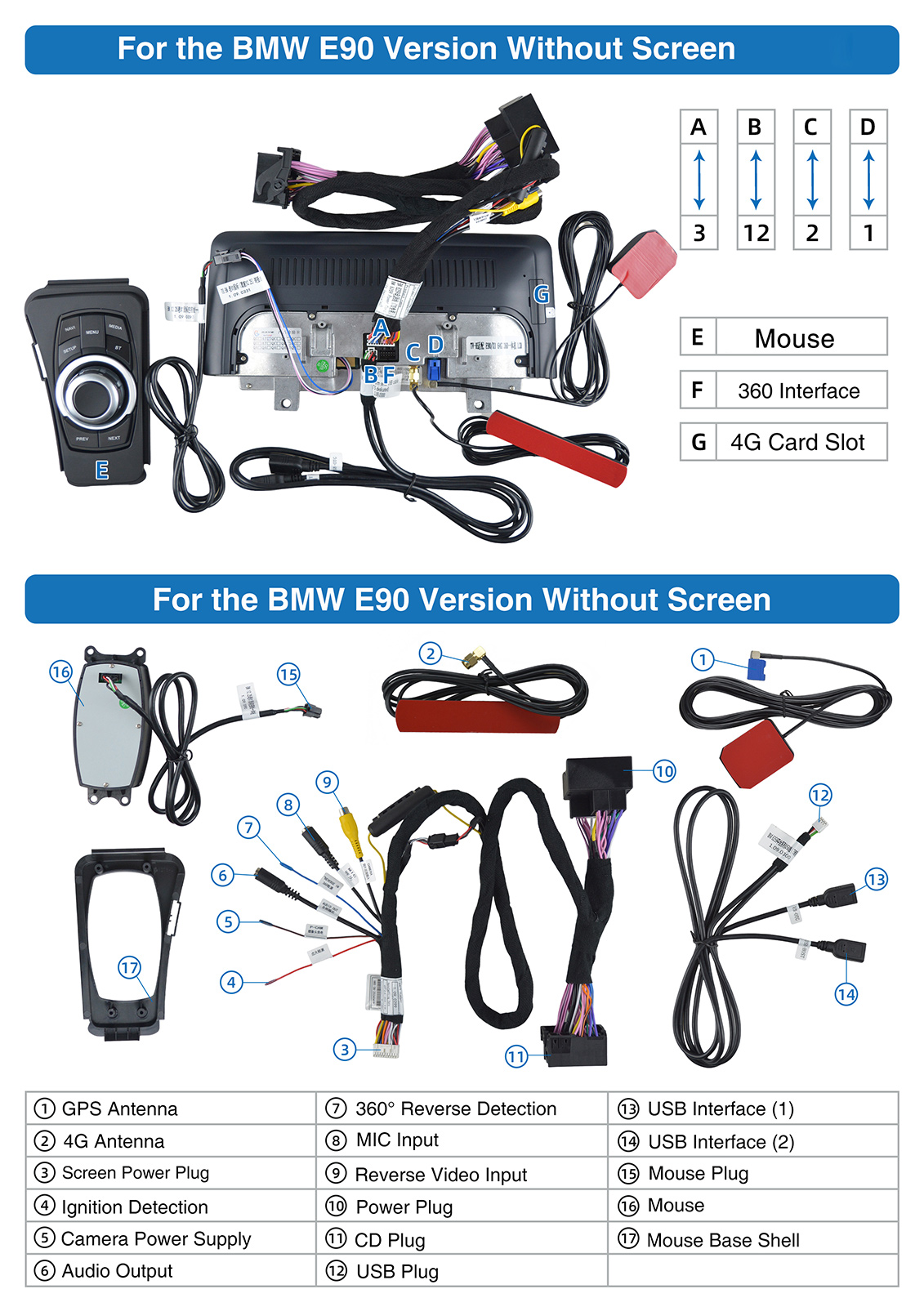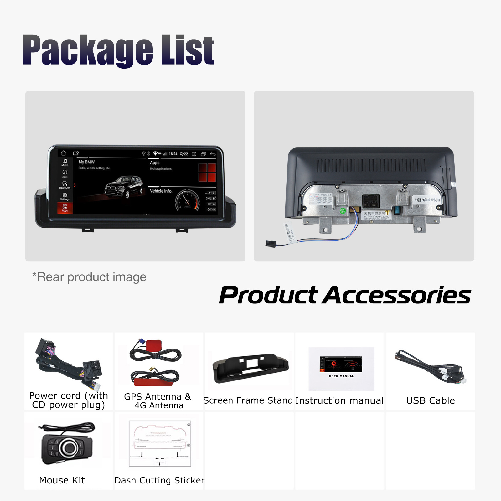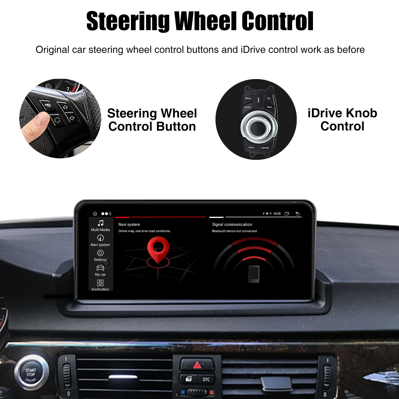 - Built-in Can-bus Decoder, Compatible with most of the steering wheel control functions and original car Idrive knob(come with a right hand driving iknob).