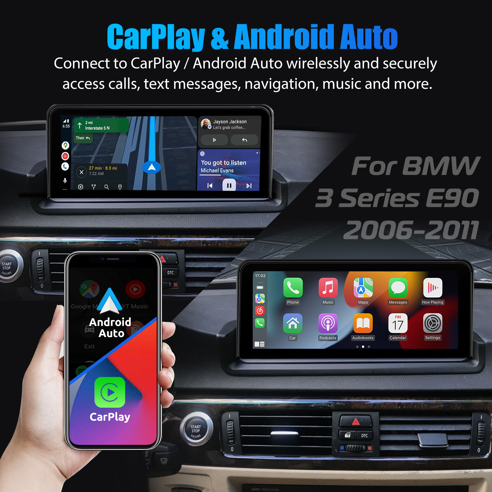 10.25 Inch Android 14 Car Stereo For BMW E60 E90 with no original display: The radio comes with the Android 15 operating system, integrated with 6GB RAM + 128B ROM, allowing you to experience faster, smoother, and smarter navigation applications.