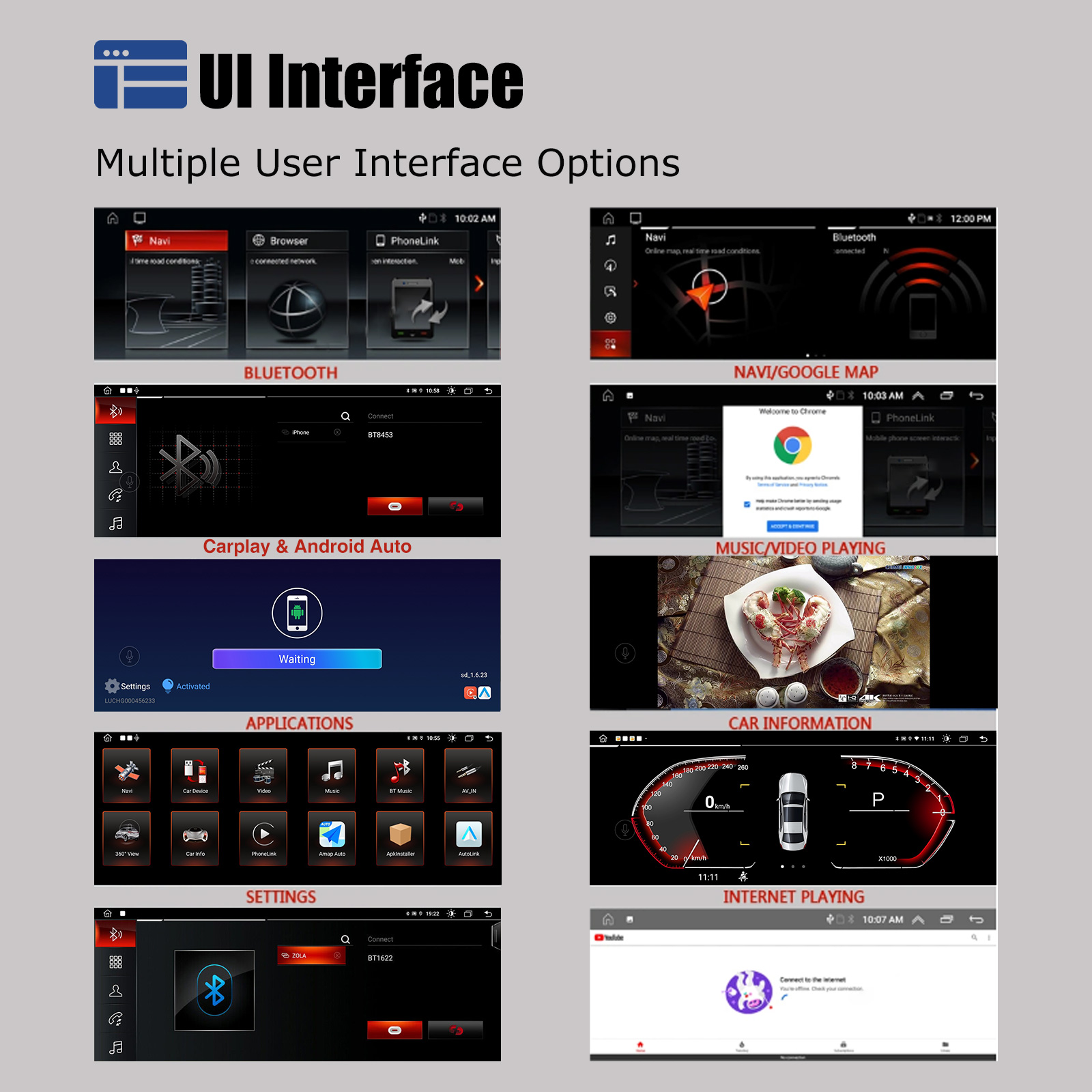 - Support Original Car Information Display and integrates OEM car centric functions. Remained Oil, Outdoor temp, Battery Volts, safety belts warning, Brake open etc.