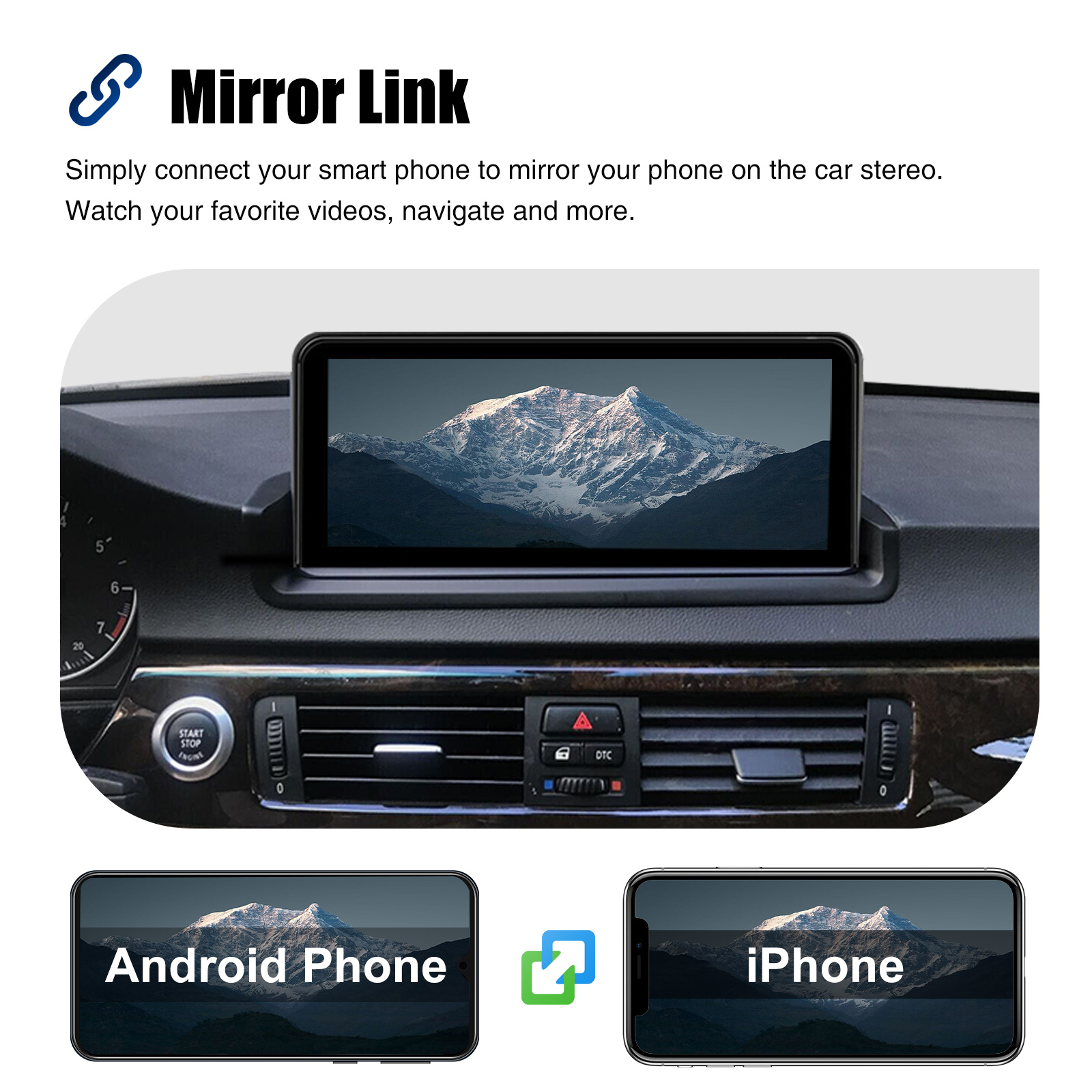 Mirror Link for iOS/Android: With this car radio, you can experience the amazing Mirror Link function, compatible with iOS and Android phones. You can mirror your smartphone screen to the car radio using apps like Google Maps, Spotify, Youtube, etc. Replace your cell phone with the car screen and turn your vehicle into a smart platform