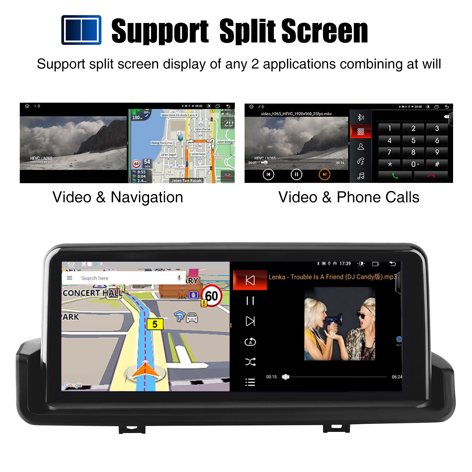 Screen: 10.25 inch 1920*720 HD IPS capacitive touch screen,178° large viewing angle