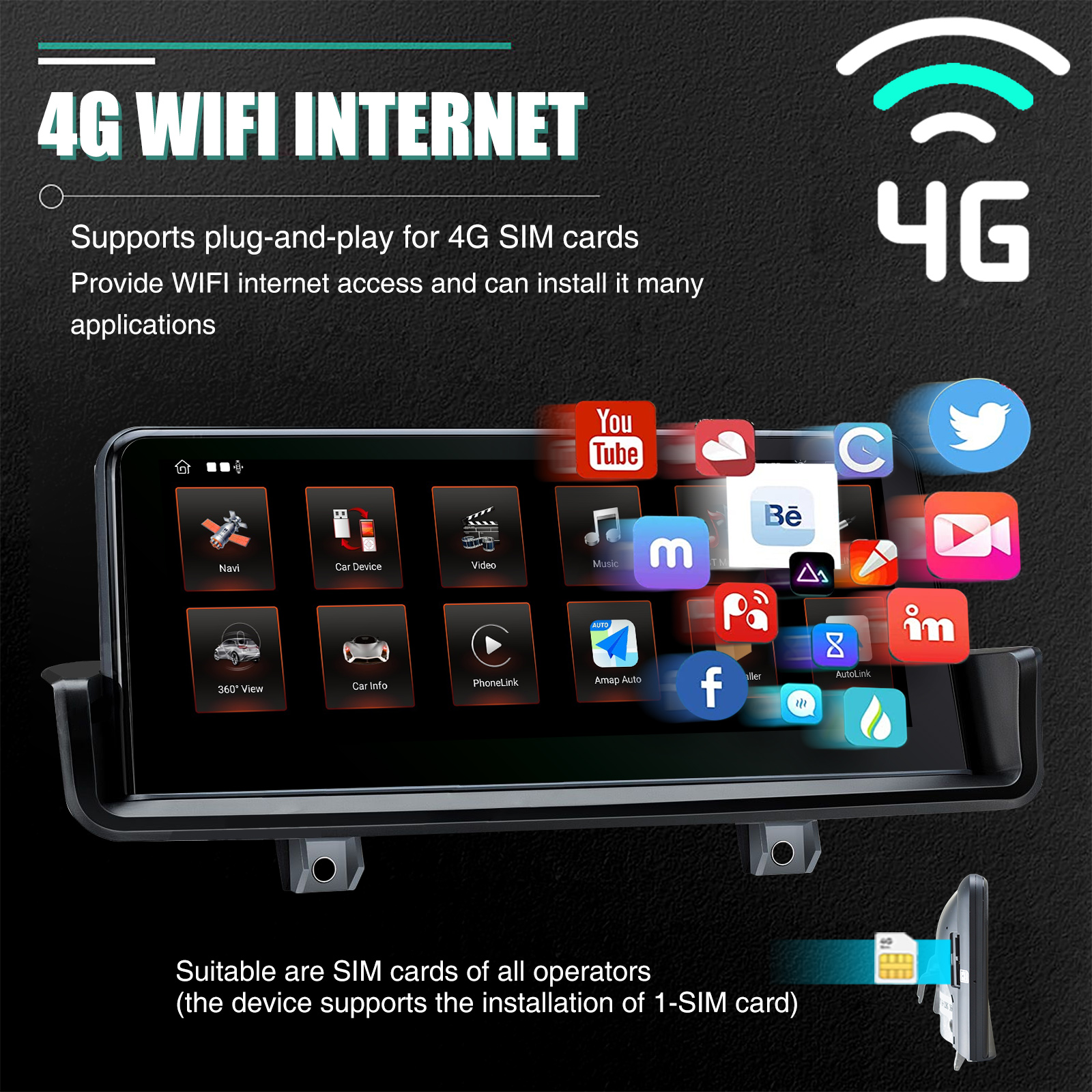 - Built-in 4G and WIFI Module for internet, just insert your 4G SIM Card, no matter where you are driving, you will enjoy the fun from internet surfing , make it possible for online navigation/ music /movie ect.