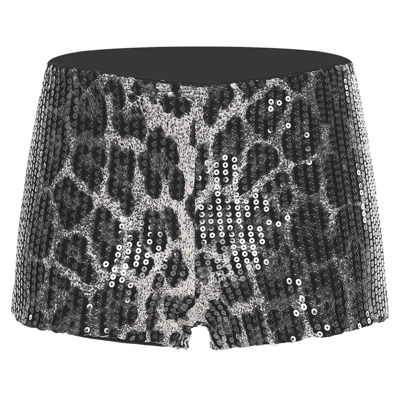 Made from a blend of polyester, sequin, and spandex, offering both durability and flexibility, ensuring a comfortable fit during various activities.