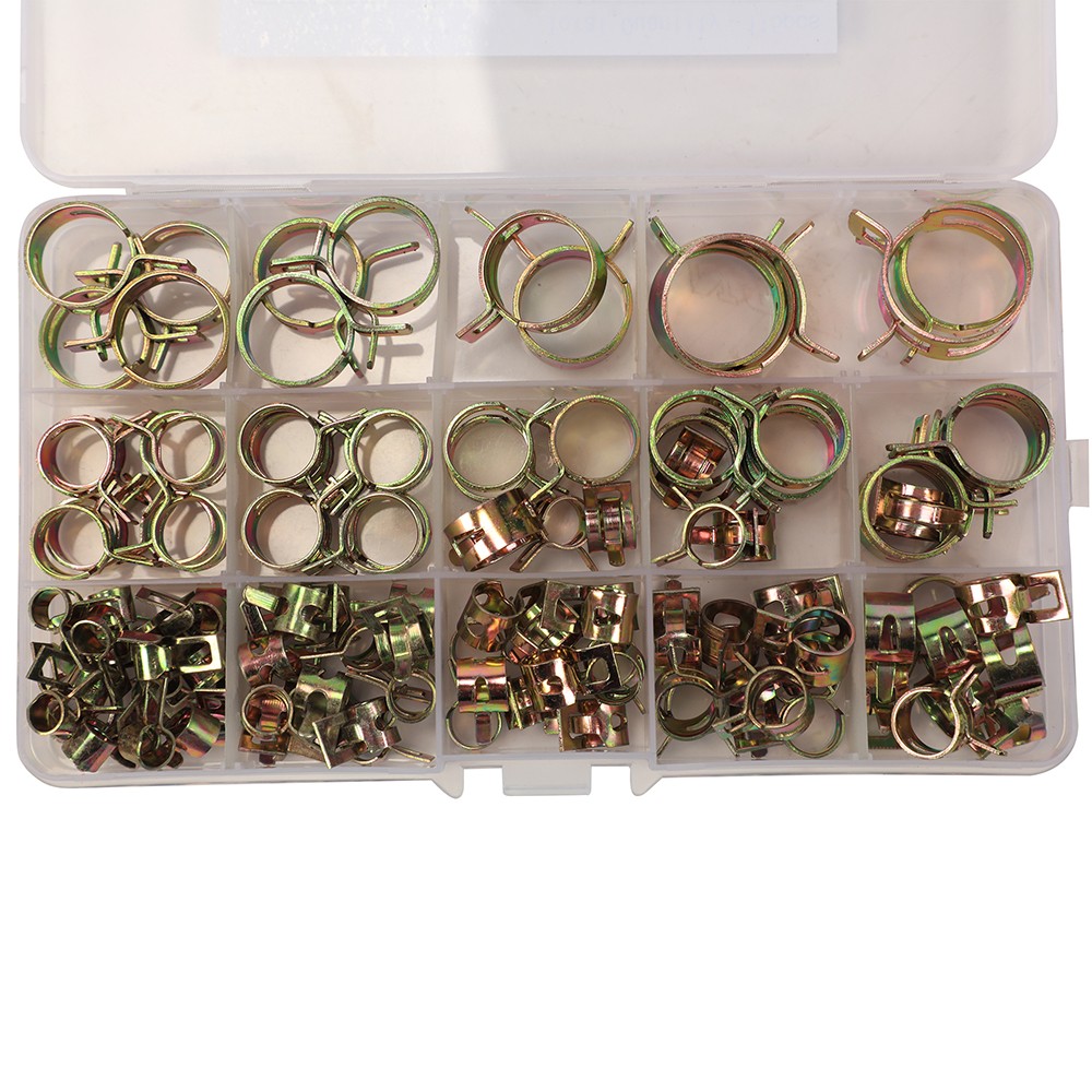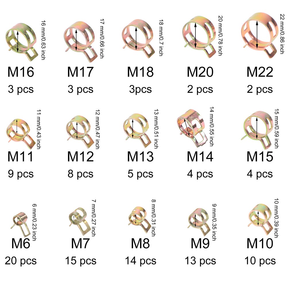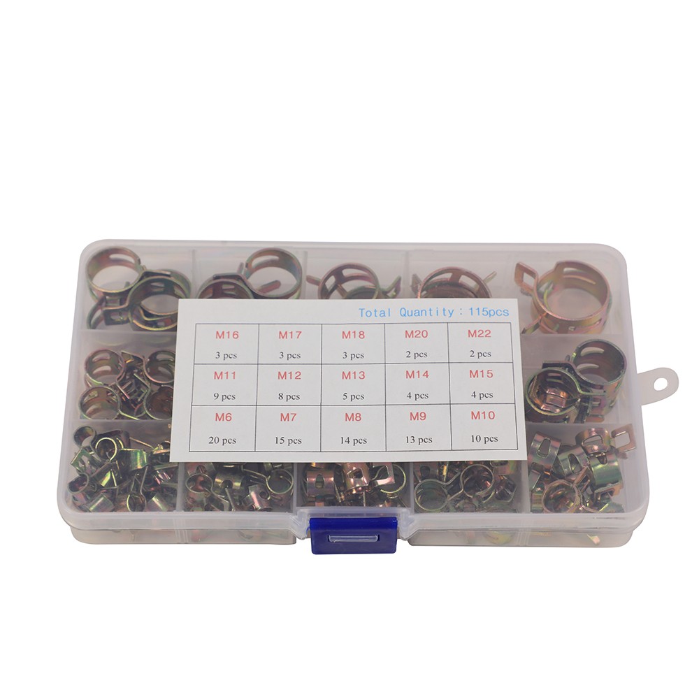 Package: 115pcs hose clamps assortment kit with 15 sizes, packed in a durable handy case, easy to use and replace.