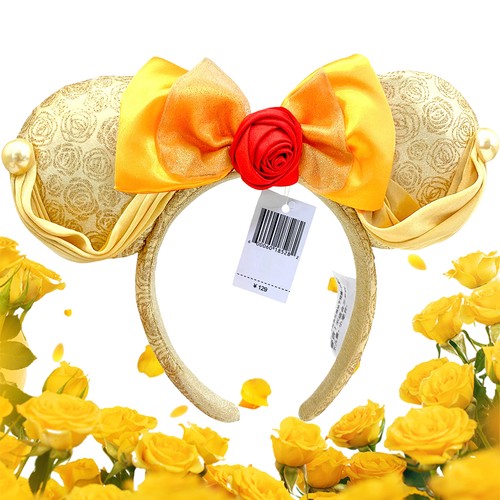 Disney- Parks Belle Beauty & the Beast Princess Rose Bow Minnie Ear Headband NWT