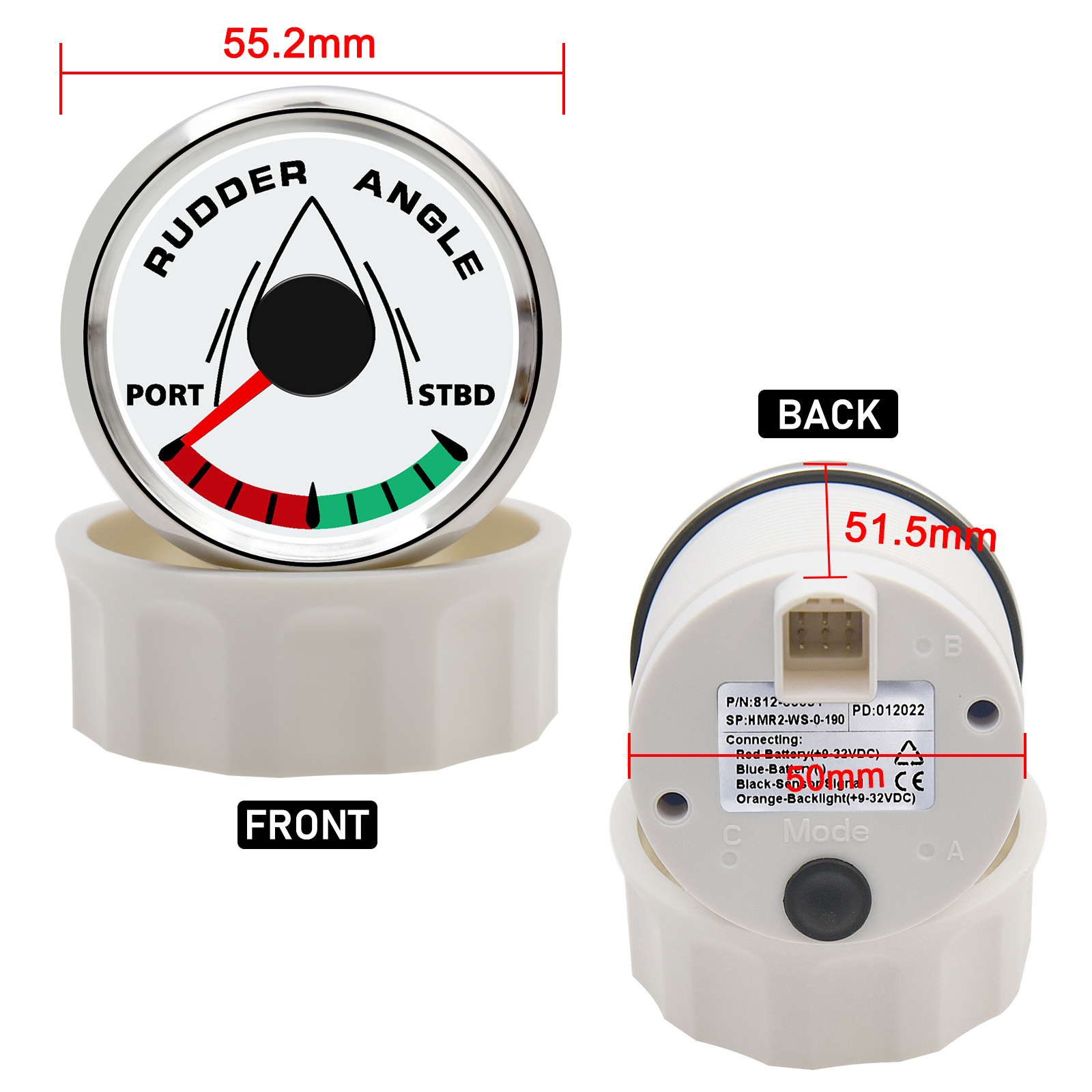 52mm Ruderanzeige Boot Ruderstandsanzeige 0-190ohms für Boot Yacht Marine