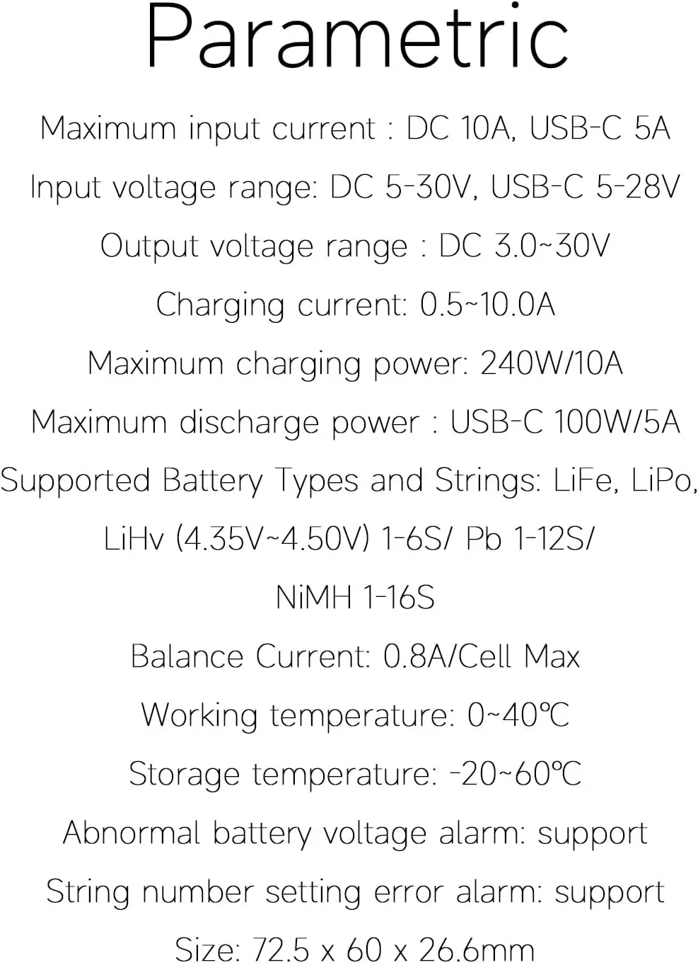 Support battery type and series: LiFe,LiPo,LiHv(4.35V~4.50V)1-6S/Pb 1-12S/NiMH 1-16S
