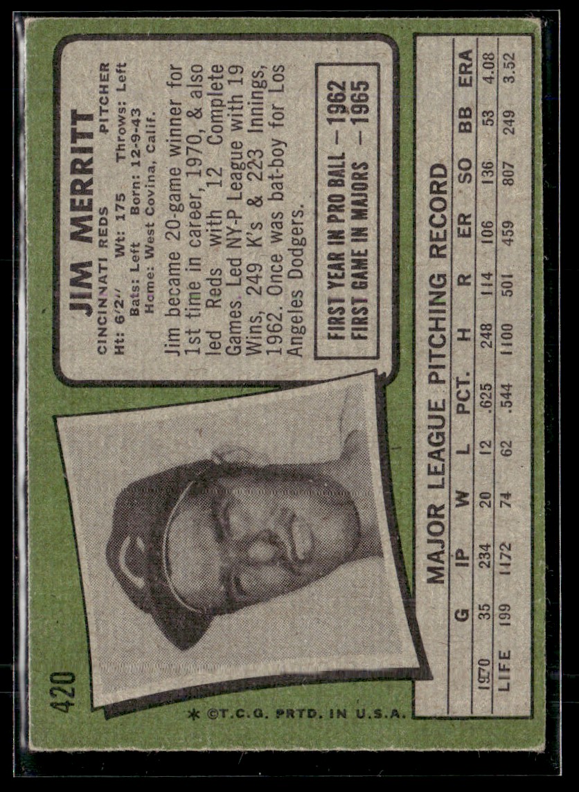| 1971 Topps Jim Merritt EX-EX/MT Set Break #420 |