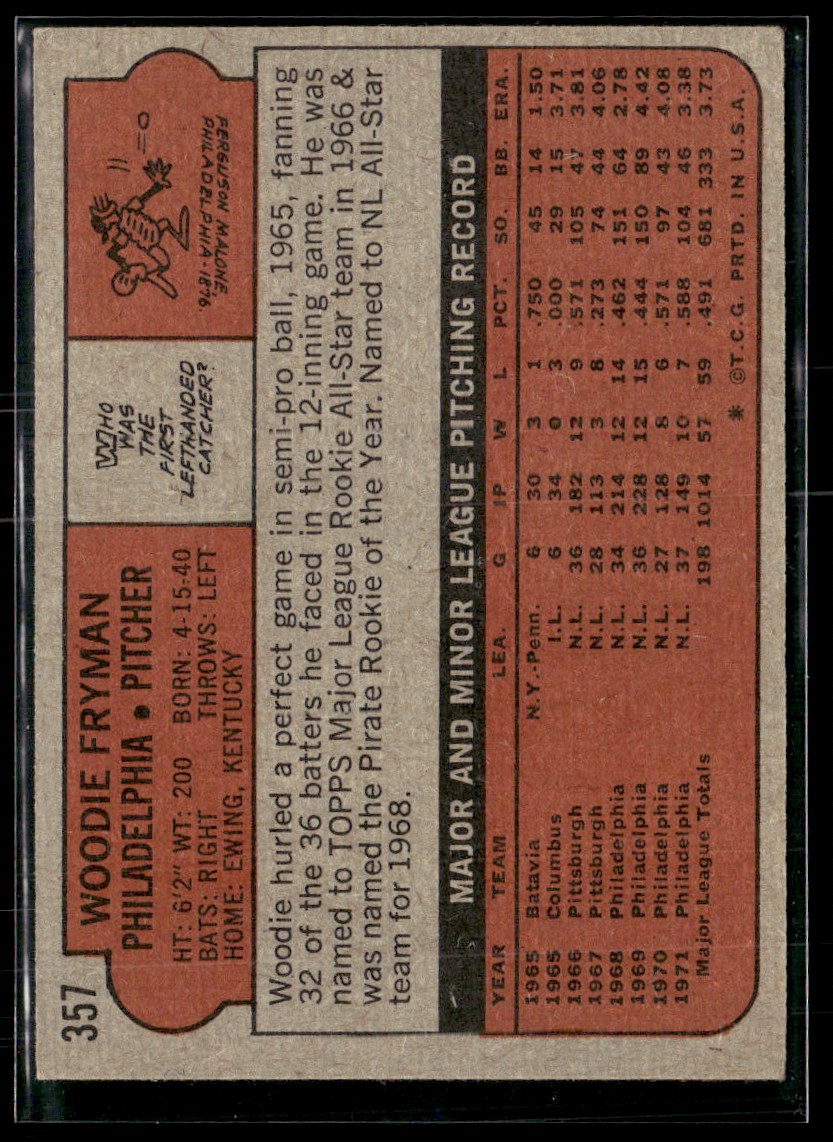 | 1972 Topps Woodie Fryman EX/MT Set Break #357 |