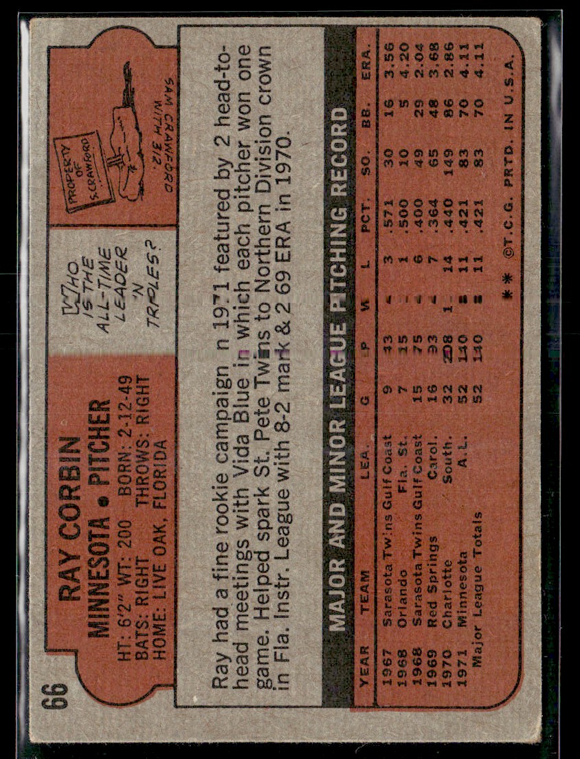 | 1972 Topps Ray Corbin EX/MT Set Break #66 |
