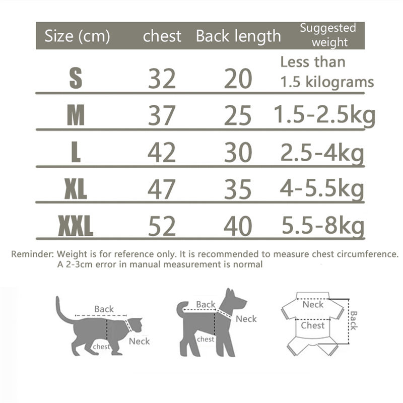 Chest circumference: Measure the widest circumference of the pet's chest and reserve 2-3cm of the measured circumference