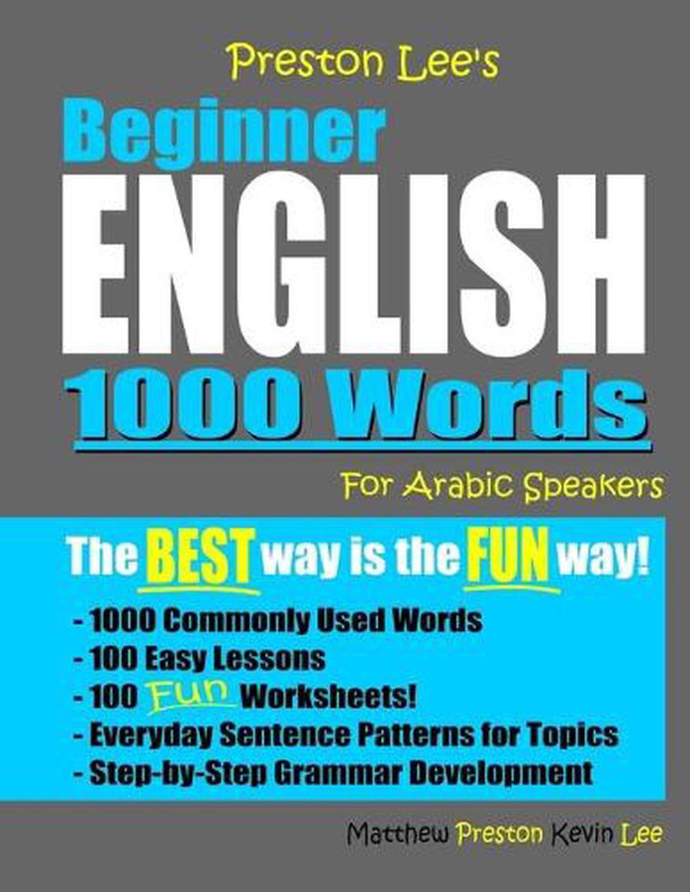 Description 1000 everyday words a beginner needs to speak English in one workbook!The words in this book are taken from the best-selling book, Preston Lee's Beginner English 100 Lessons.Have fun and learn English the easy way. This workbook has been written for all ages, children and adults alike.This workbook features: - 1000 important words used in daily life- 100 excellent lessons with everyday topics- 100 fun worksheets for easy learning- 100 unique sentence patterns for word usage- Step-by-step grammar development- Vocabulary words include Arabic translationPreston Lee's Beginner English is the absolute best way to learn English. Written by ESL specialists, Kevin Lee and Matthew Preston have taught English as a Second Language for over 20 years around the world.