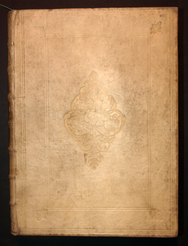 Reliure In-4 en plein vélin d’époque, décors gaufrés sur les plats.