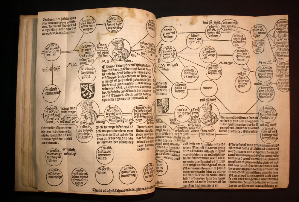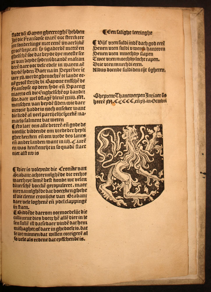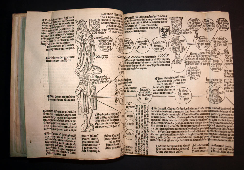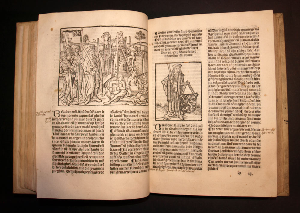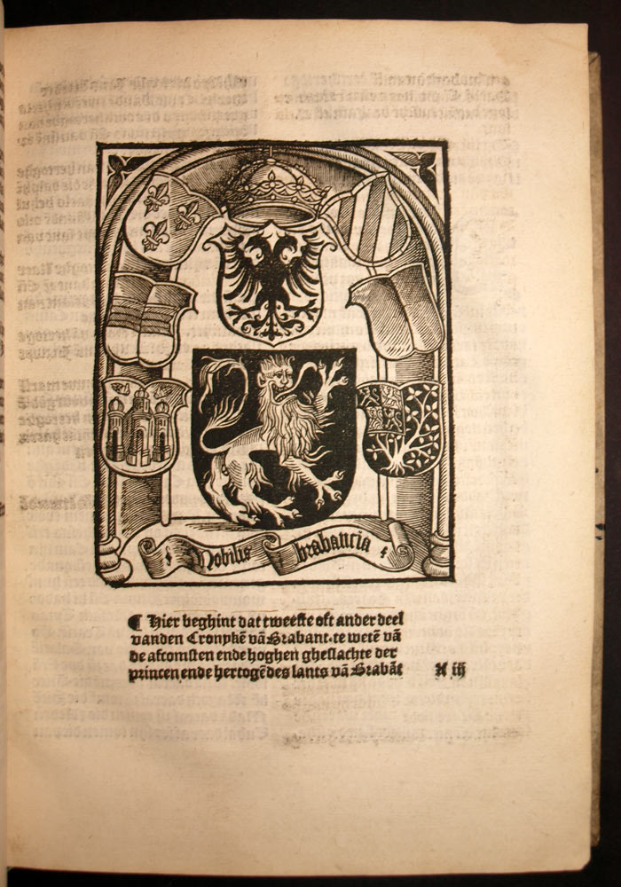 Dye alder excellenste cronike van Brabant, Hollant, Zeelant ende Vlaenderen » est un livre historique de référence pour l’histoire des provinces des Pays-Bas. Il décrit l’histoire des provinces, notamment la Brabant, la Hollande, la Zélande et la Flandre, depuis les temps les plus anciens jusqu’à la fin du 15ème siècle. Le livre est écrit en néerlandais et comporte de nombreuses gravures sur bois représentant des scènes historiques et des portraits de personnages célèbres.