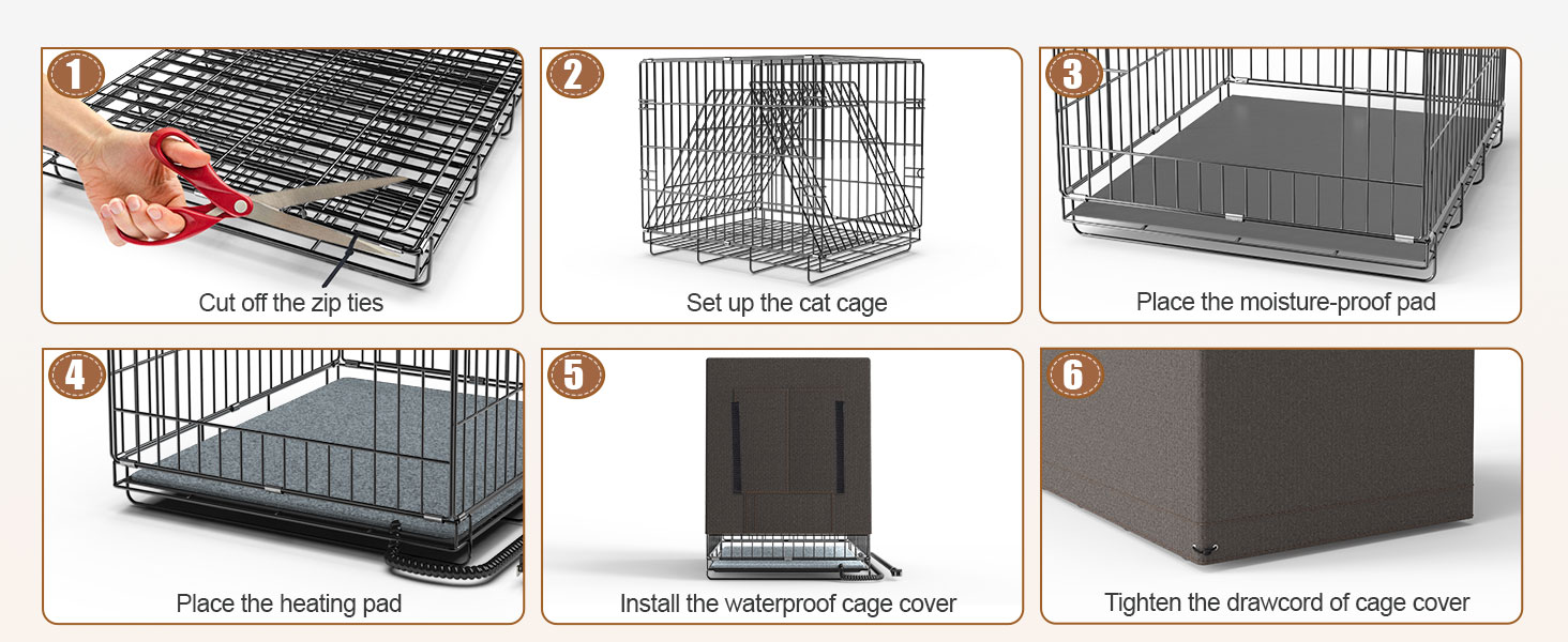 All-Weather Toughness: Our cat cage cover is crafted from waterproof Oxford cloth and features a sponge thermal lining. The hem drawcord at the bottom helps minimize cold wind intrusion, keeping your pets cozy and protected