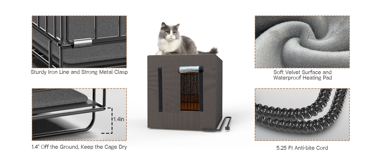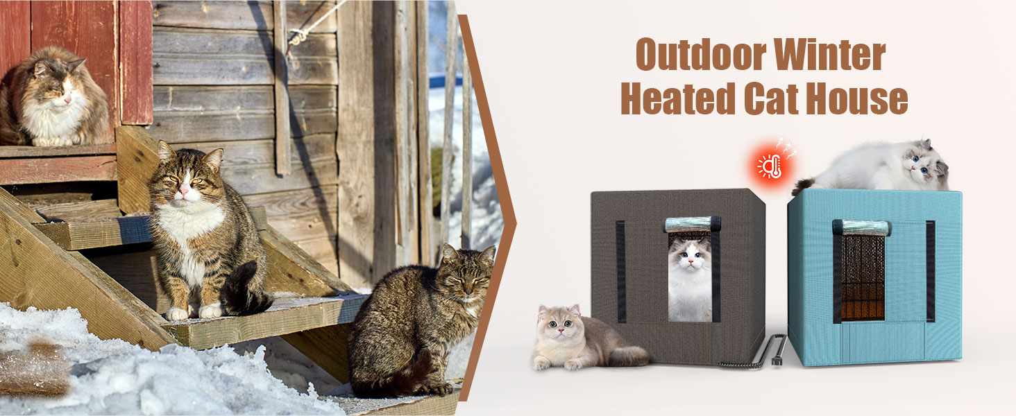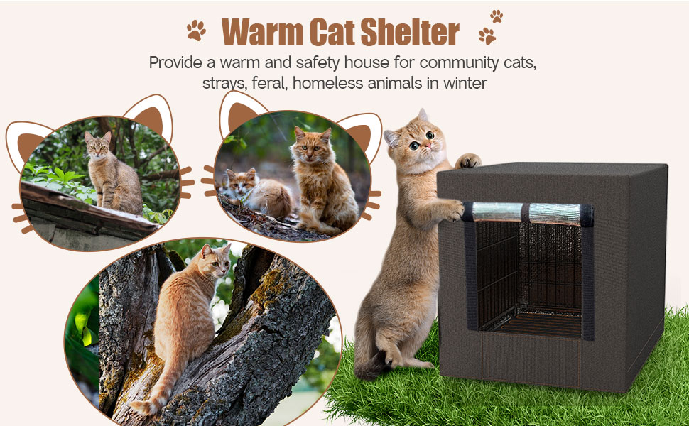 Winter Shelter for Stray Cats:Winten is coming, This heated cat house combines a solid metal grid structure, all-around insulated cover, and high-quality heating pad to lock in cozy temperatures to warm space for cats to shelter from the cold, making it ideal for outdoor use year-round