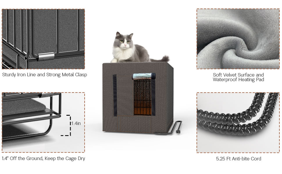 Quick Warming Heating Pad: Plug the cable,this waterproof heating pad will heat up in 113°F to 125°F. about 10 minutes, The soft velvet cover provides a warm and cozy refuge for feral cats during cold winter months