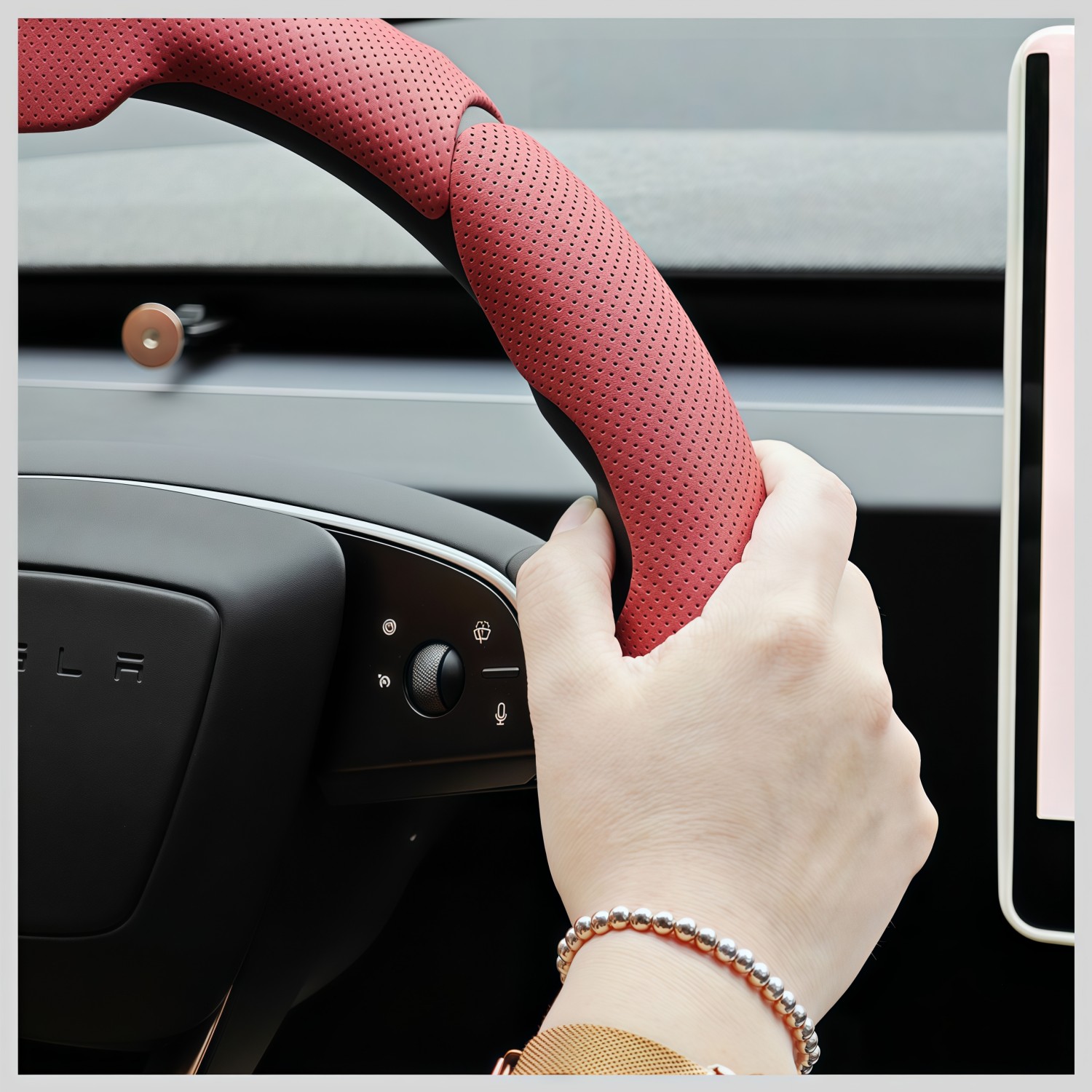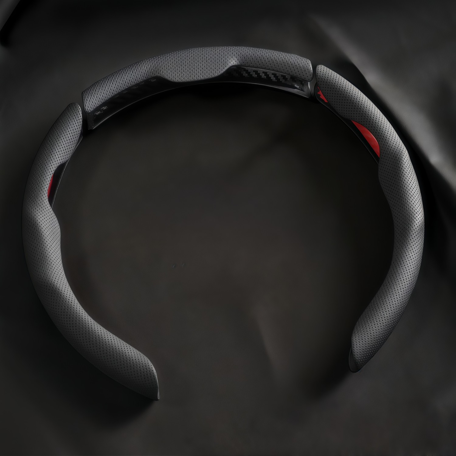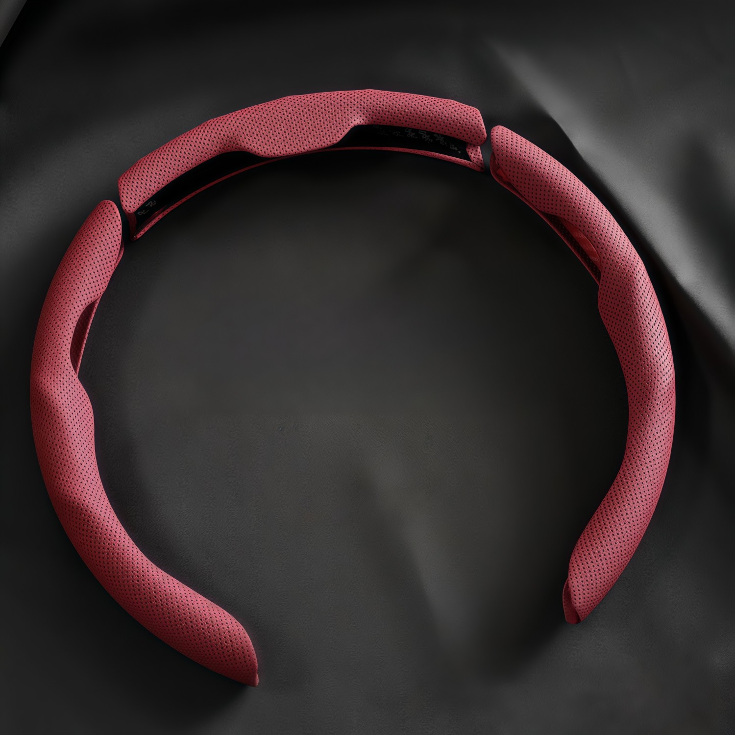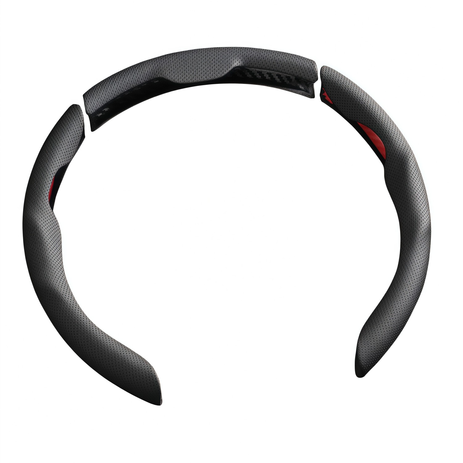 Embedded design. First, clip the left steering wheel sleeve onto the steering wheel, then place the right steering wheel sleeve on the steering wheel, and finally install the last piece on top.