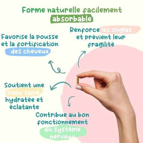Biotine Vitamine B8 BIO - Végétale & biologique - 60 Gélules Vegan (2 mois) - Cheveux, Peau, Ongles, Système Nerveux - Haute Assimilation - Fabriqué en France